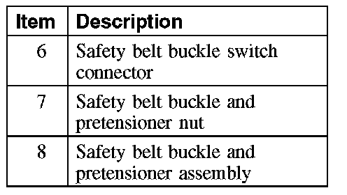 SAFETY BELT SYSTEM - EXPLODED VIEW, FRONTFront Safety Belt - With Seat Integrated Restraints (SIR) (Part 1):