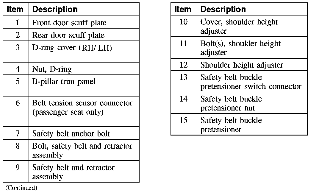 Front Safety Belt - Without Seat Integrated Restraints (SIR) (Part 2):