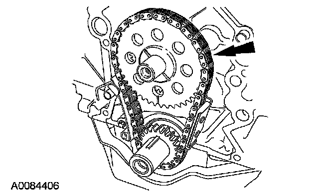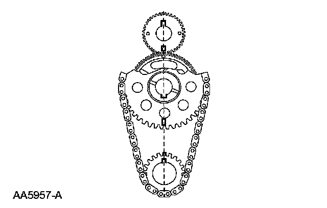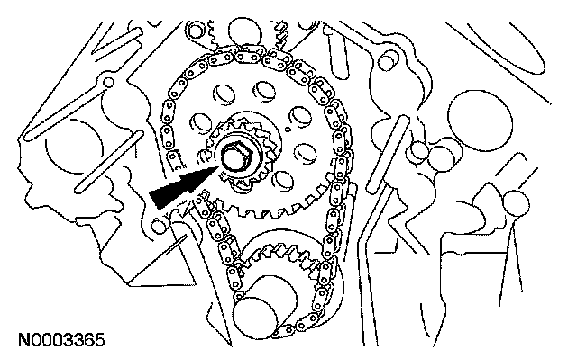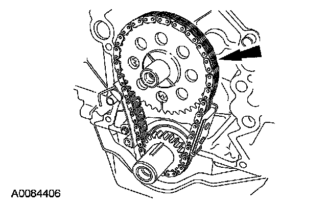 5. Remove the camshaft sprocket, the crankshaft sprocket and the timing chain as an assembly.