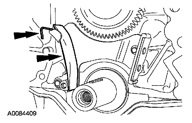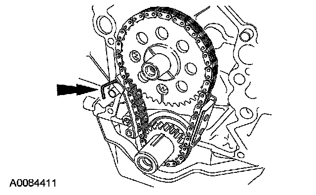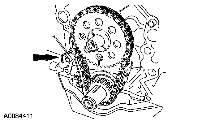 4. Compress and install a retaining pin to hold the timing chain tensioner.