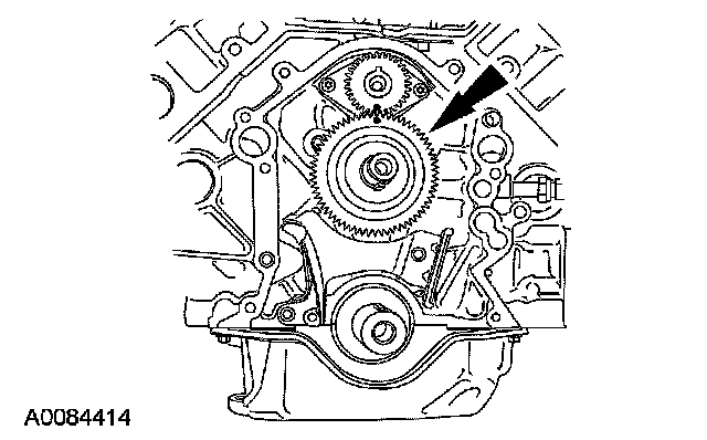 4. Turn the camshaft sprocket so that the timing mark is at the 12 o'clock position and is lined up with the timing mark on the balance shaft at the 6 o'clock position.