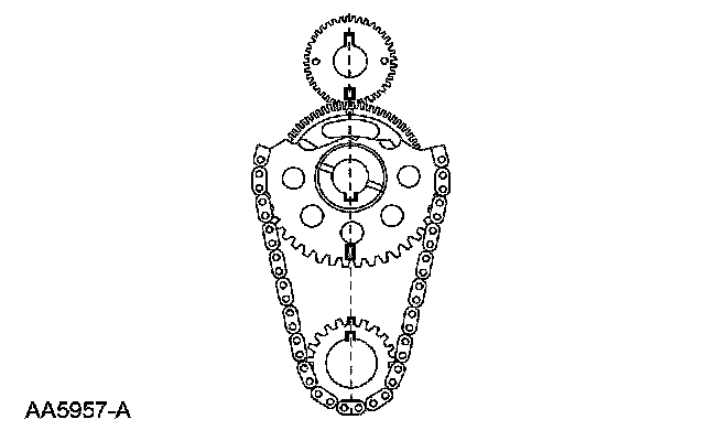 5. Install the timing chain, the camshaft sprocket and the crankshaft sprocket.