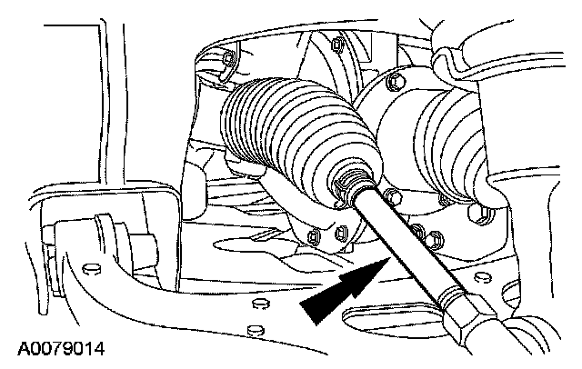 4. NOTE: Do not allow the steering gear bellows to twist when the front wheel spindle tie rod is rotated.