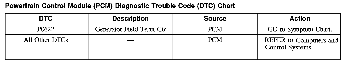Powertrain Control Module (PCM) Diagnostic Trouble Code (DTC) Chart