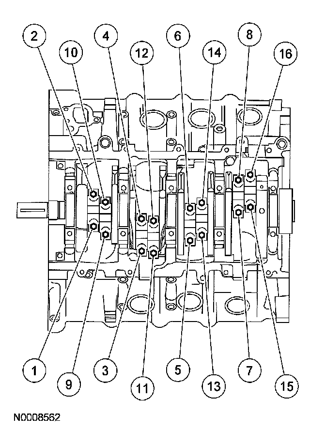 Tighten the bolts in 2 stages, in the sequence shown.Stage 1 43 Nm (32 ft. lbs.)