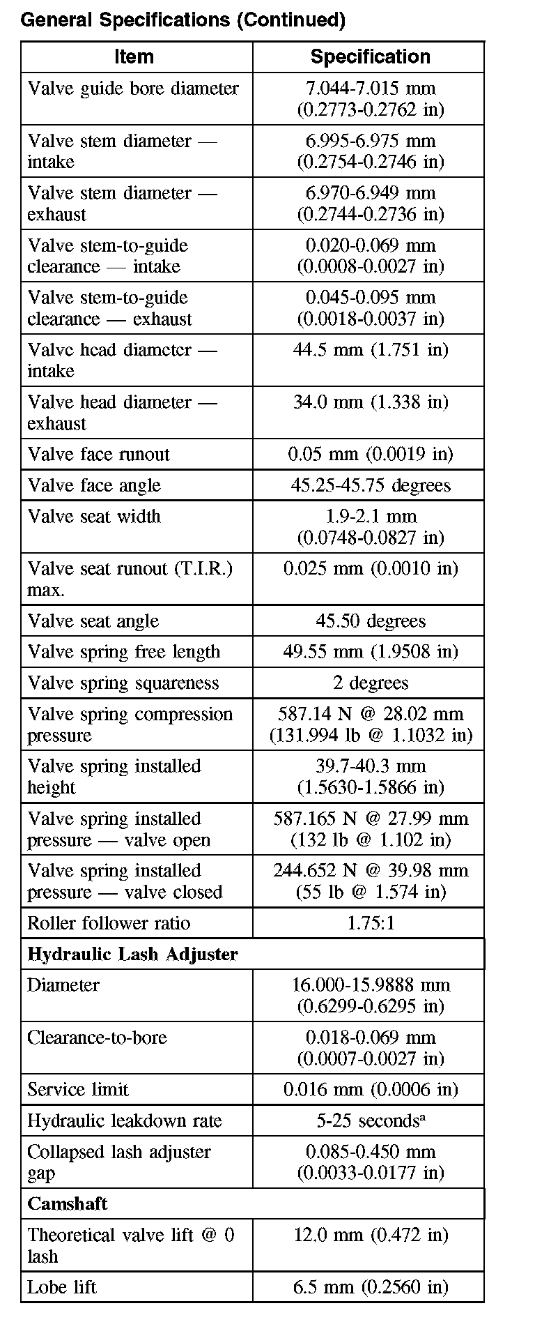 General Specifications