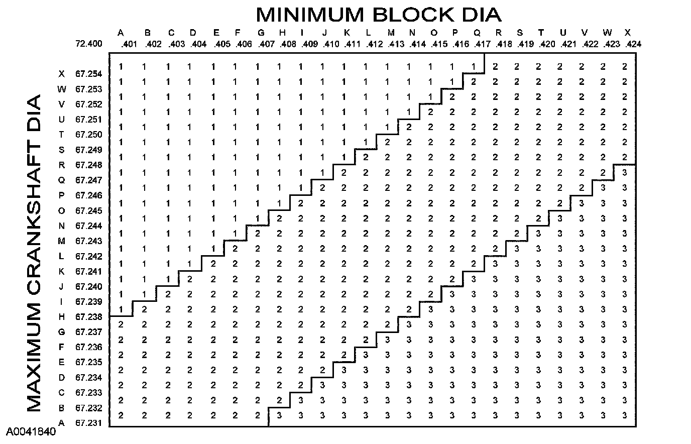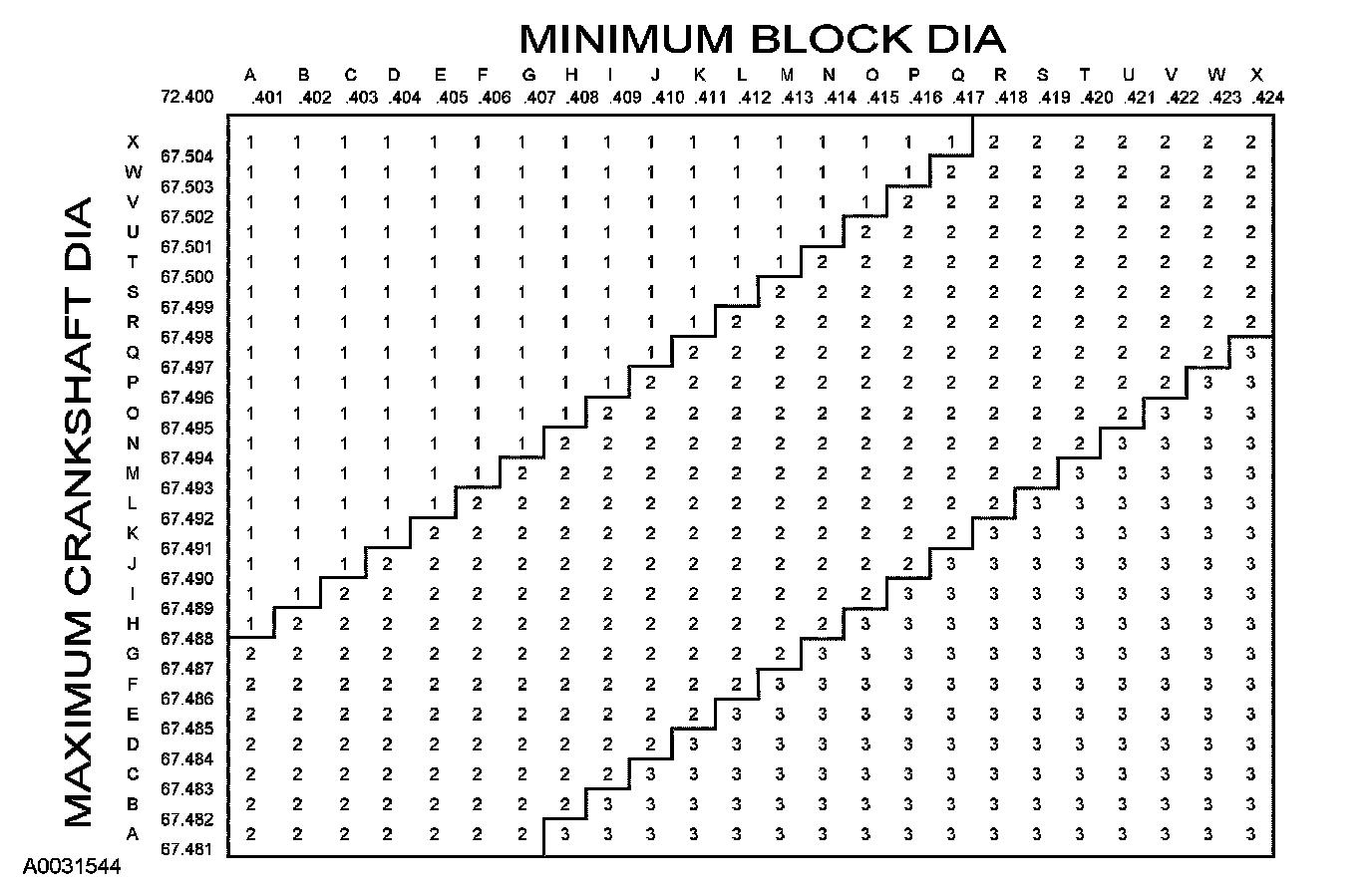 Main bearing journal diameter 67.481-67.505 mm (2.6568-2.6576 inch)
