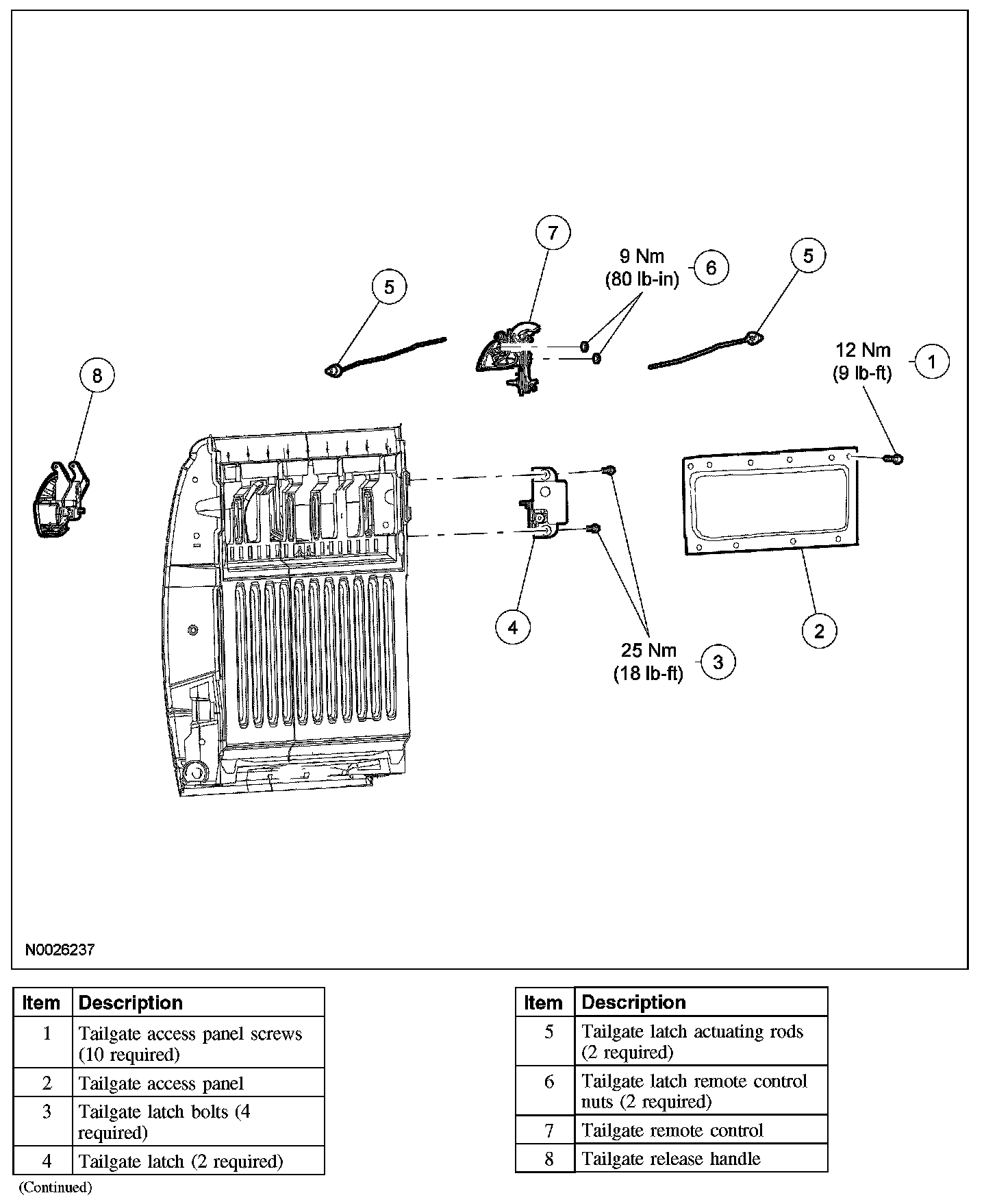 TAILGATE HANDLE, LOCK AND LATCHES - EXPLODED VIEW