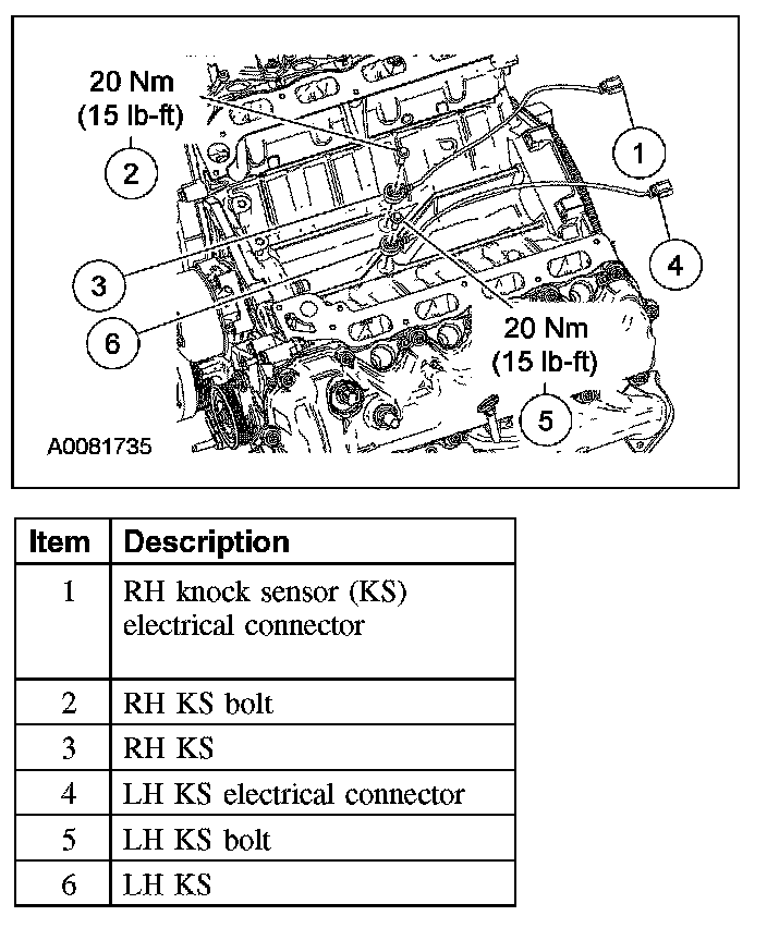2. Disconnect the knock sensor (KS) electrical connectors.
