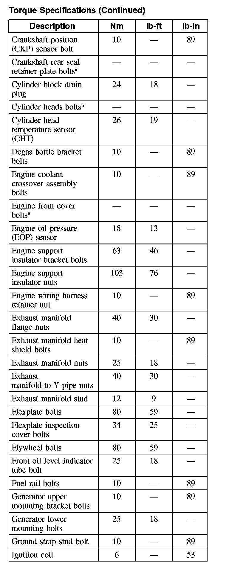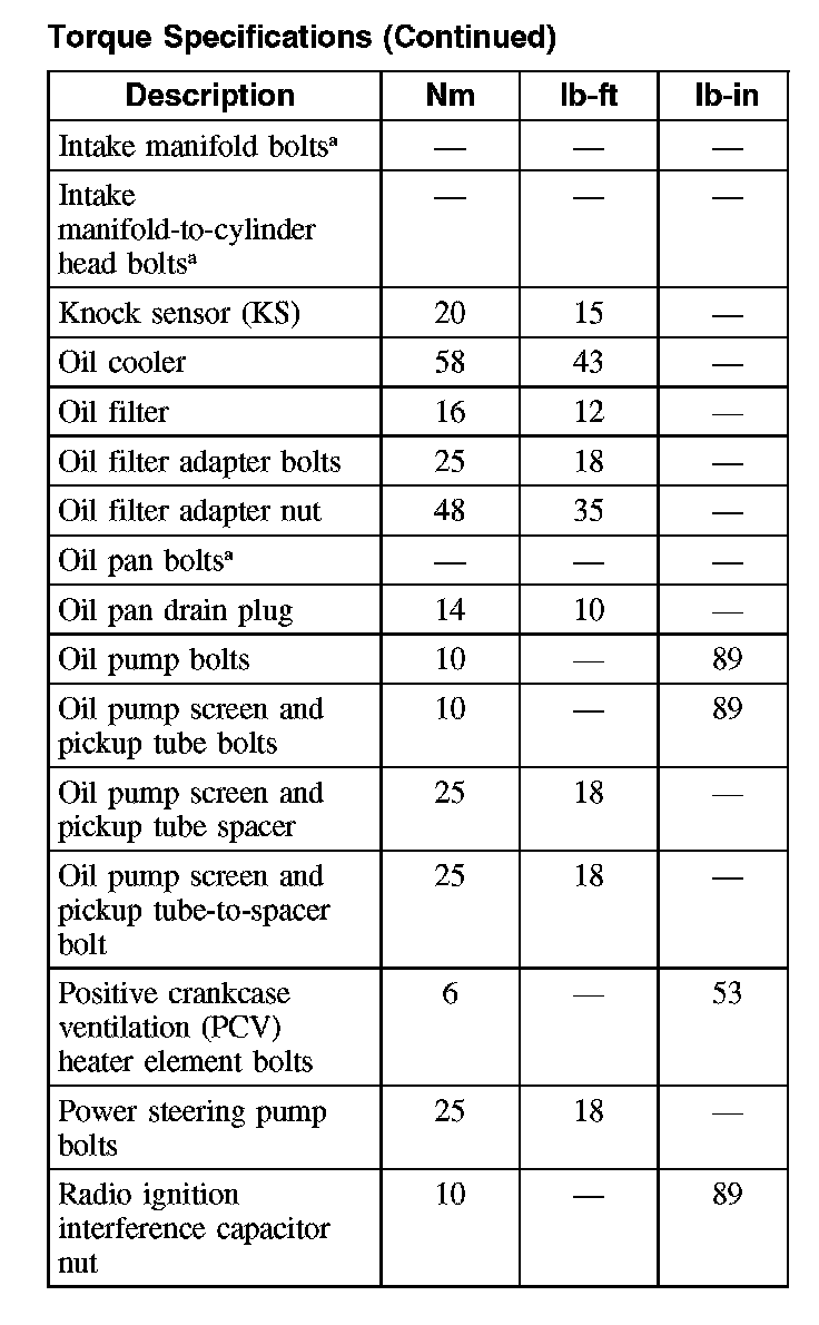 Torque Specifications