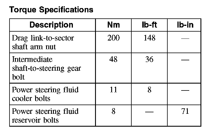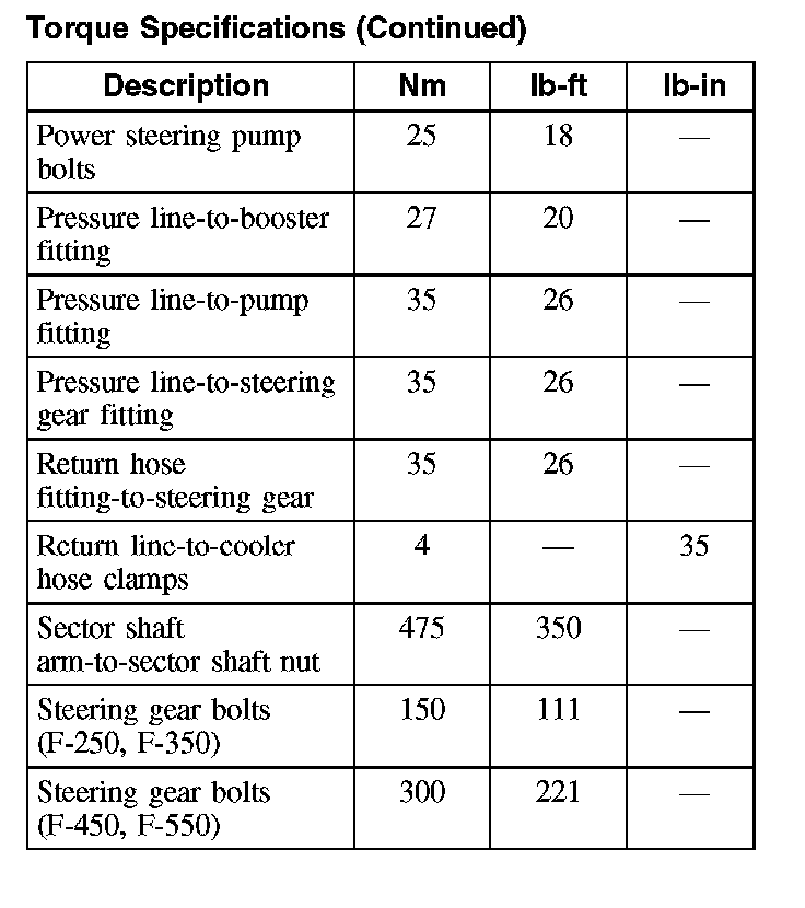 Torque Specifications: