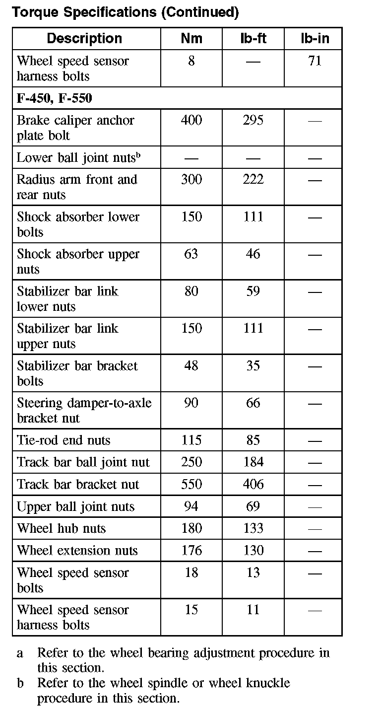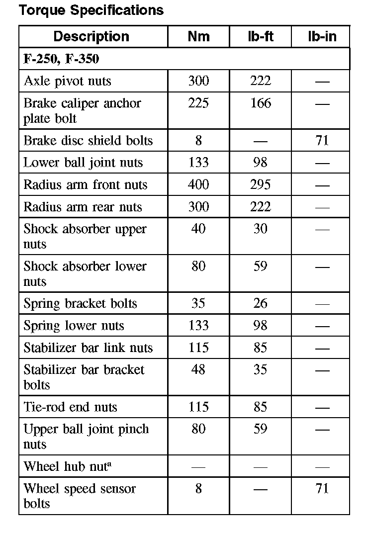 Torque Specifications: