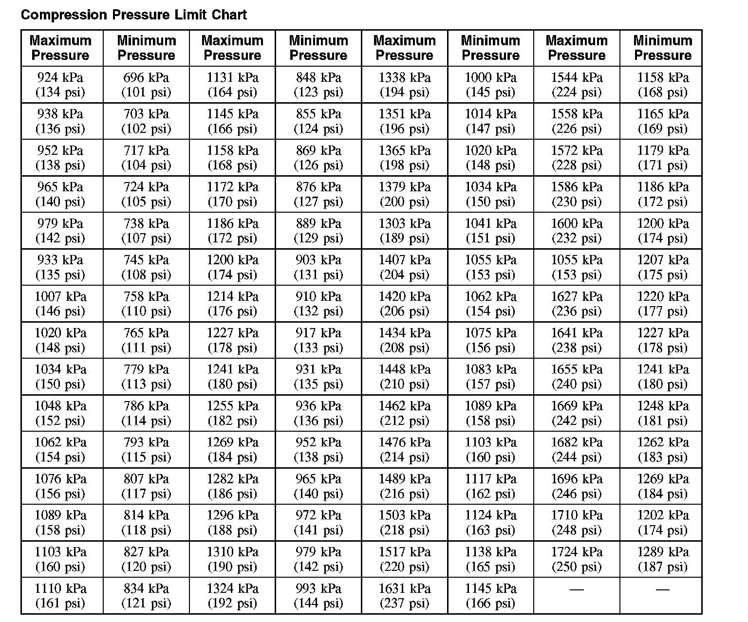 AllData Editors Note - Ford does not provide a cranking pressure specification, only an acceptable range.Compression Test - Test Results