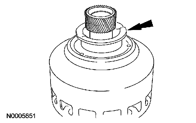 1. Clean and inspect the forward/reverse sun gear and input shell assembly. Check the sun gear teeth, lug teeth and thrust surface for damage. If any evidence of damage is found, a new input shell assembly must be installed.