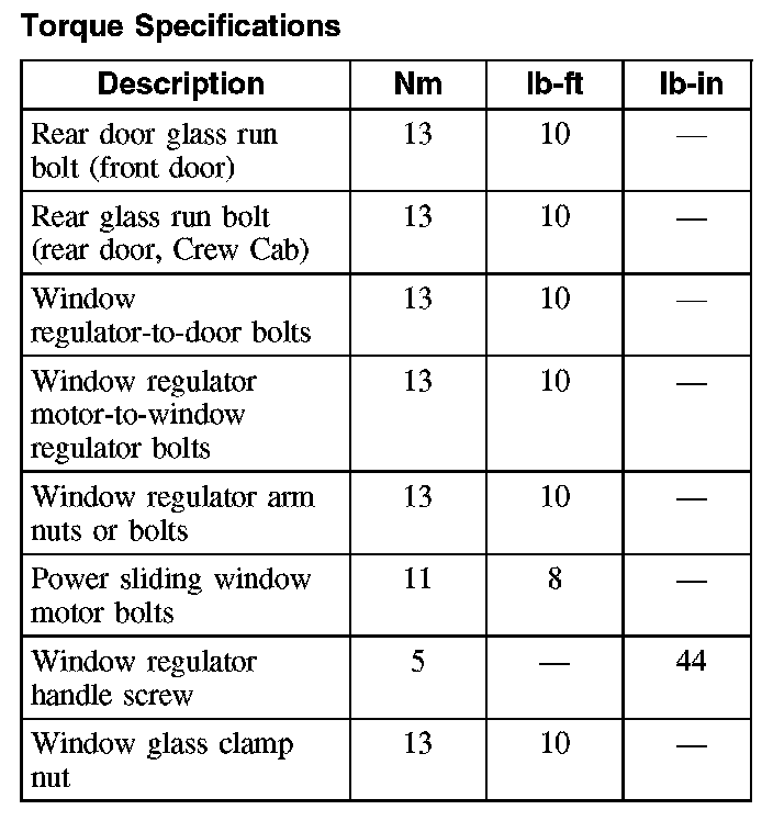 Torque Specifications: