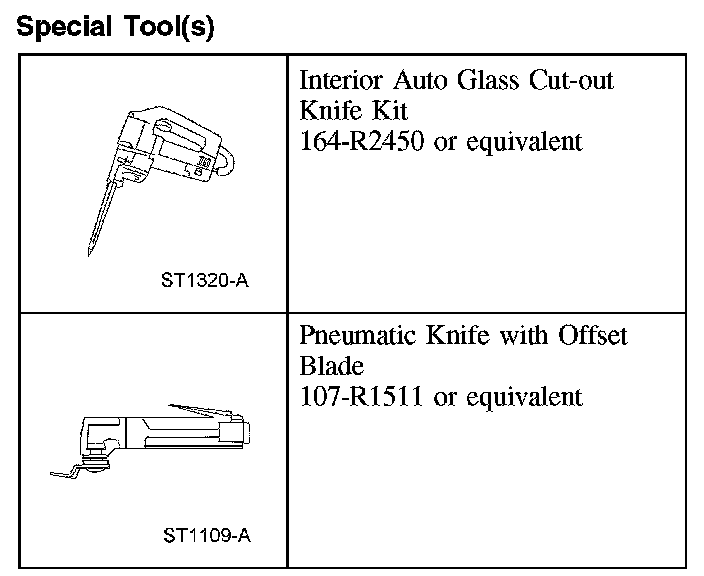 WARNING: To prevent glass splinters from entering the eyes or cutting the hands, wear safety glasses and heavy gloves when cutting the glass from the vehicle. Failure to follow these instructions may result in personal injury.