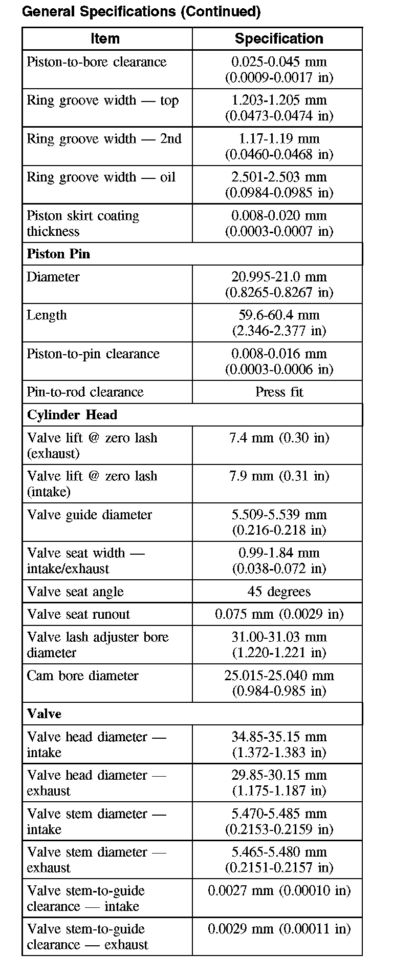 General Specifications