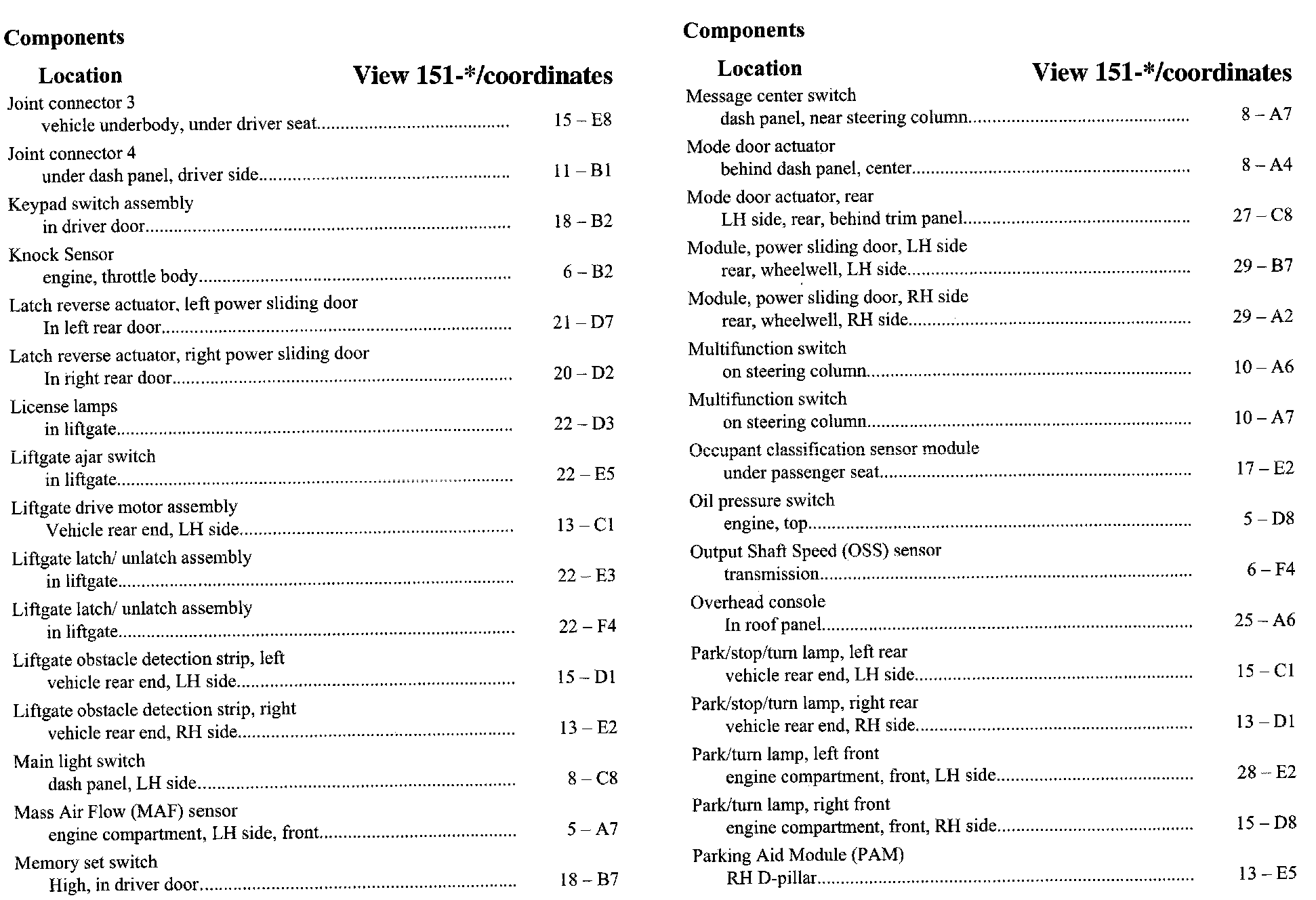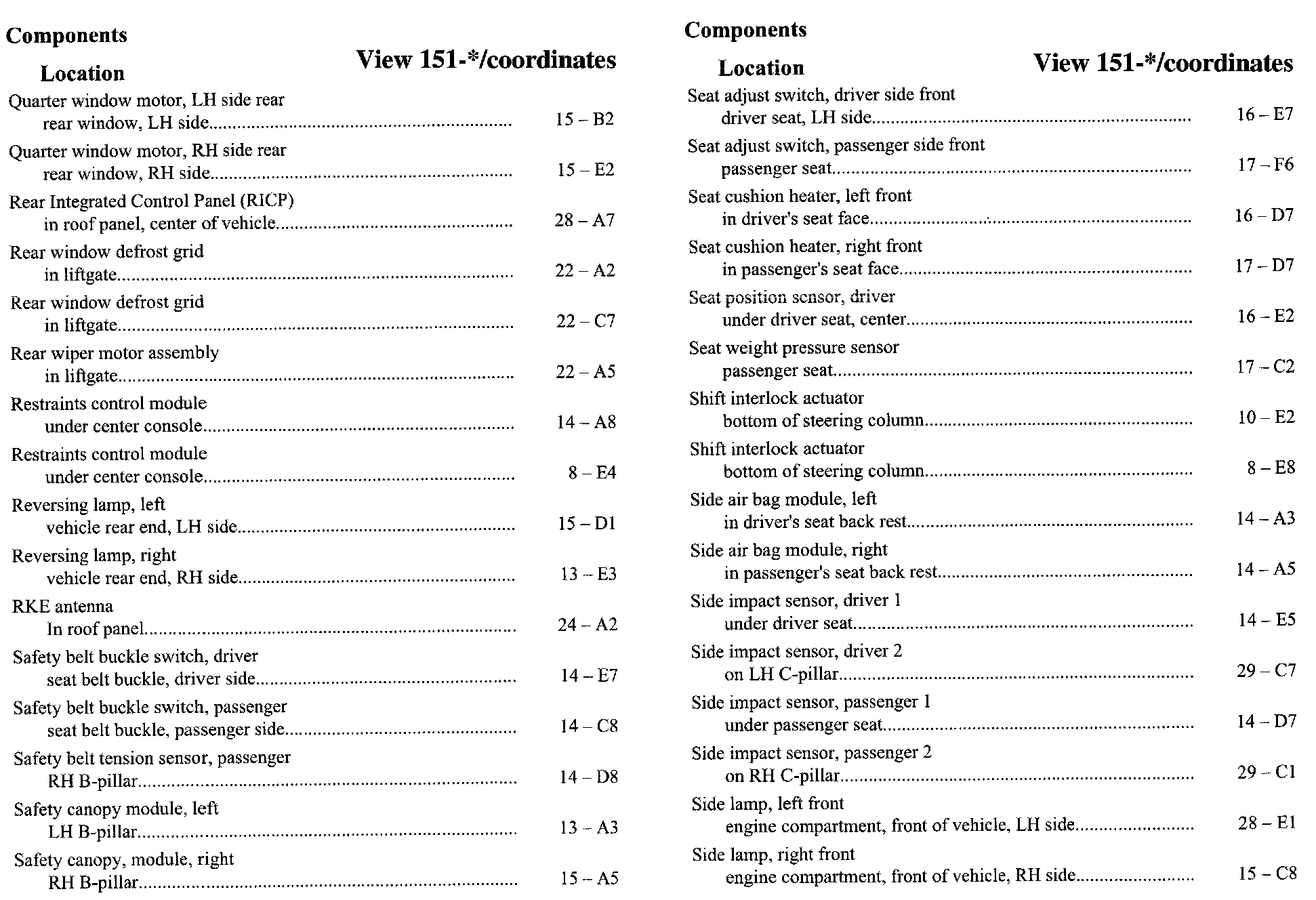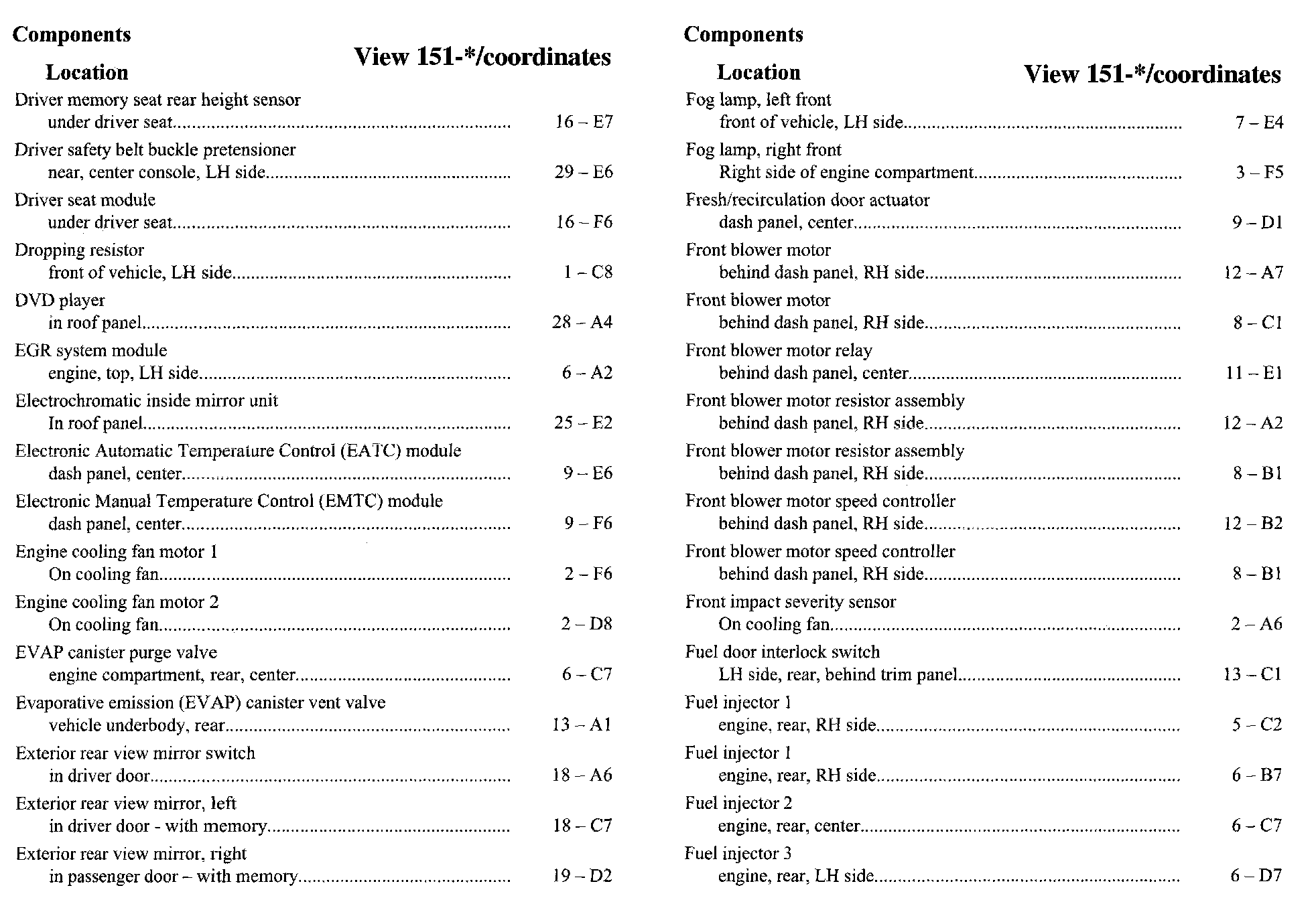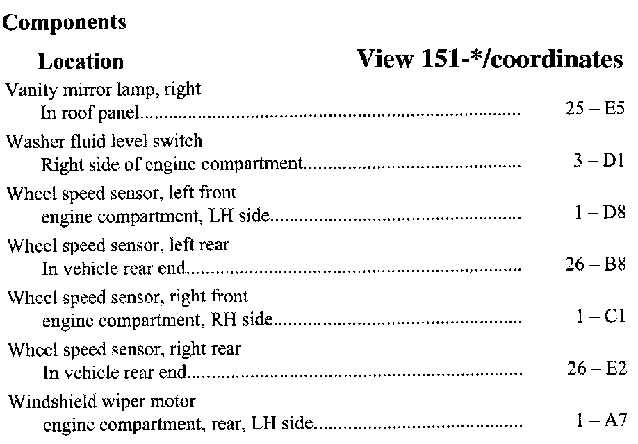 PLEASE NOTE: If a link on the Component Location Index to a View is not provided, that means that the Component and/or View in question does NOT apply to the vehicle model selected.