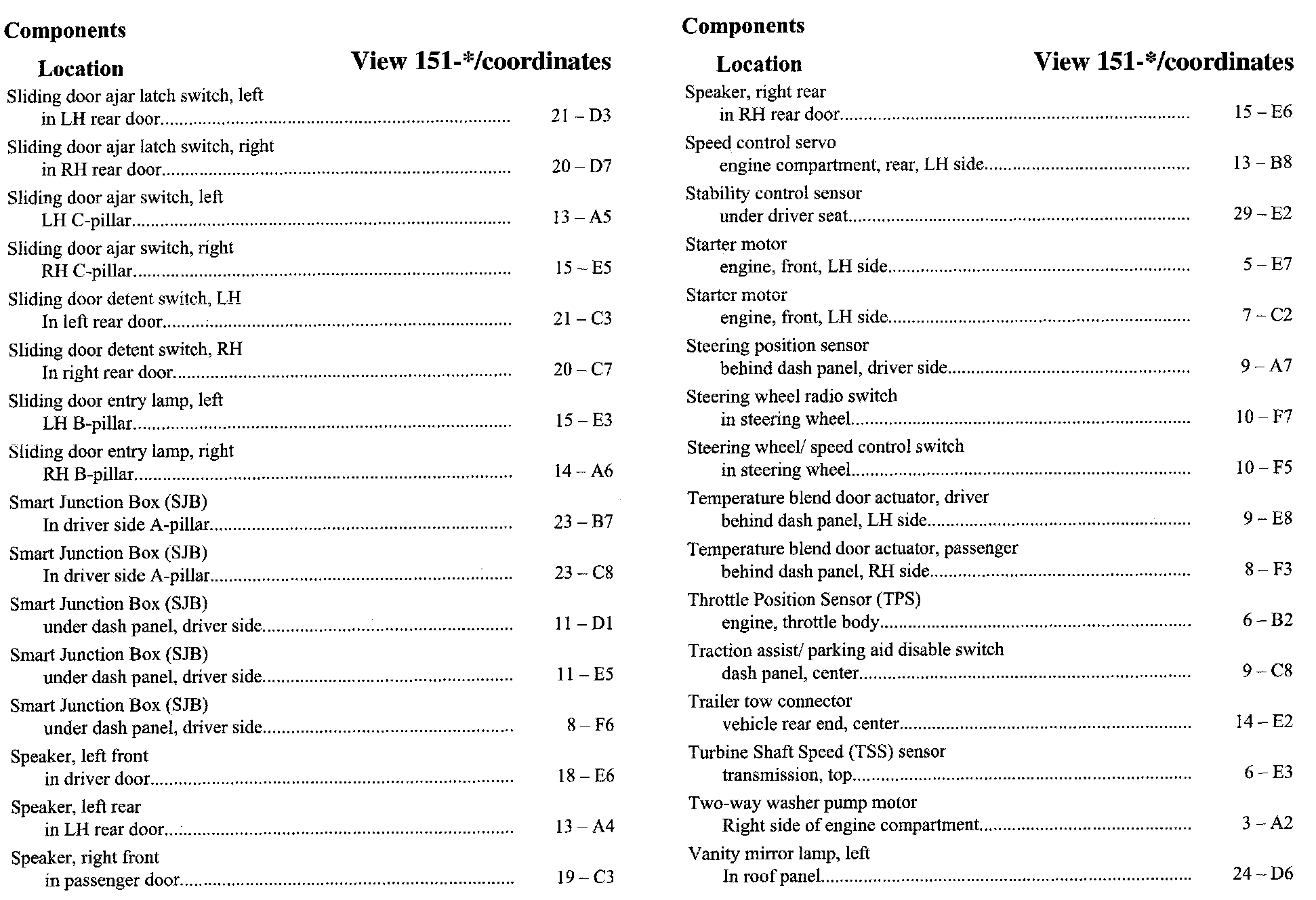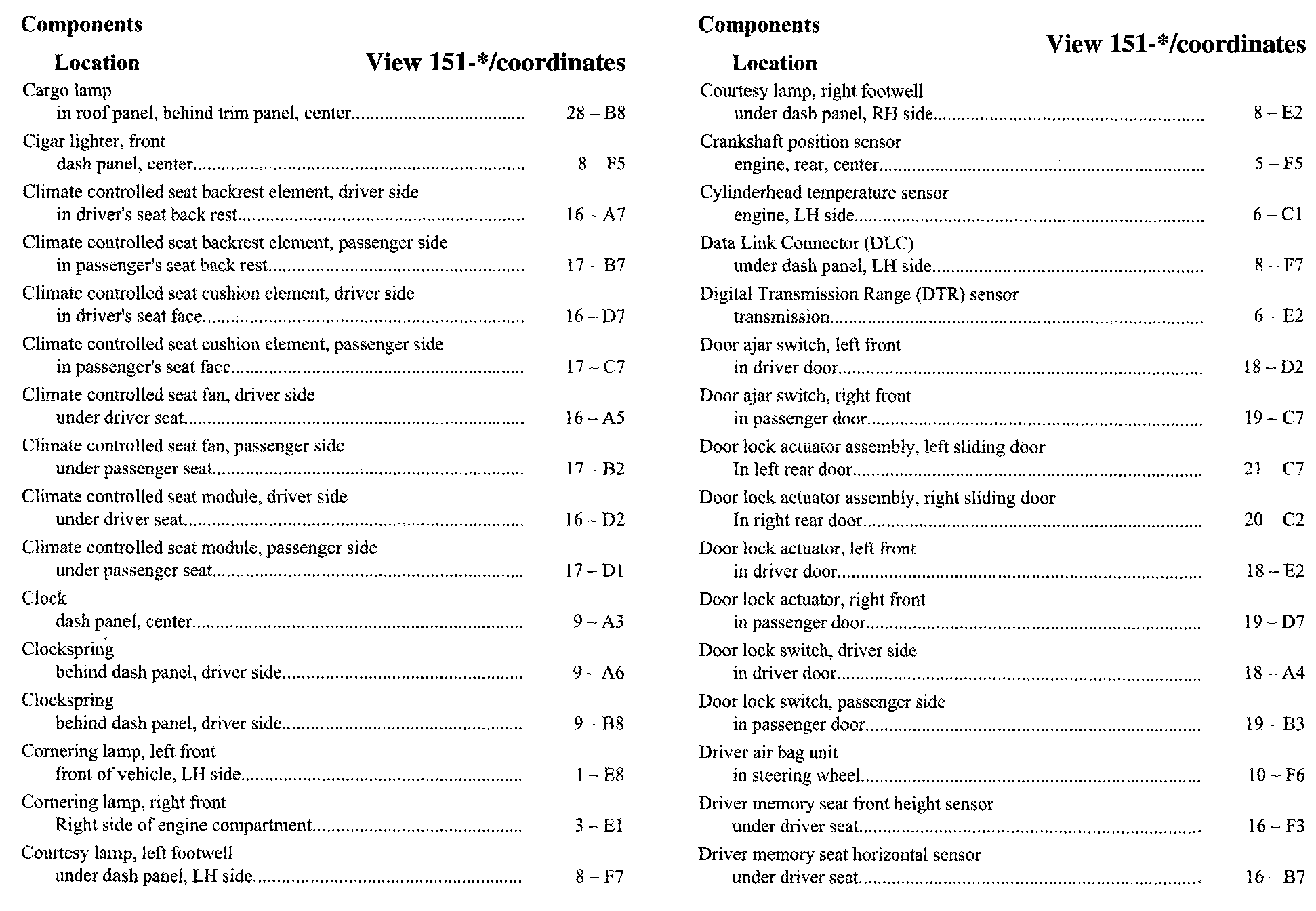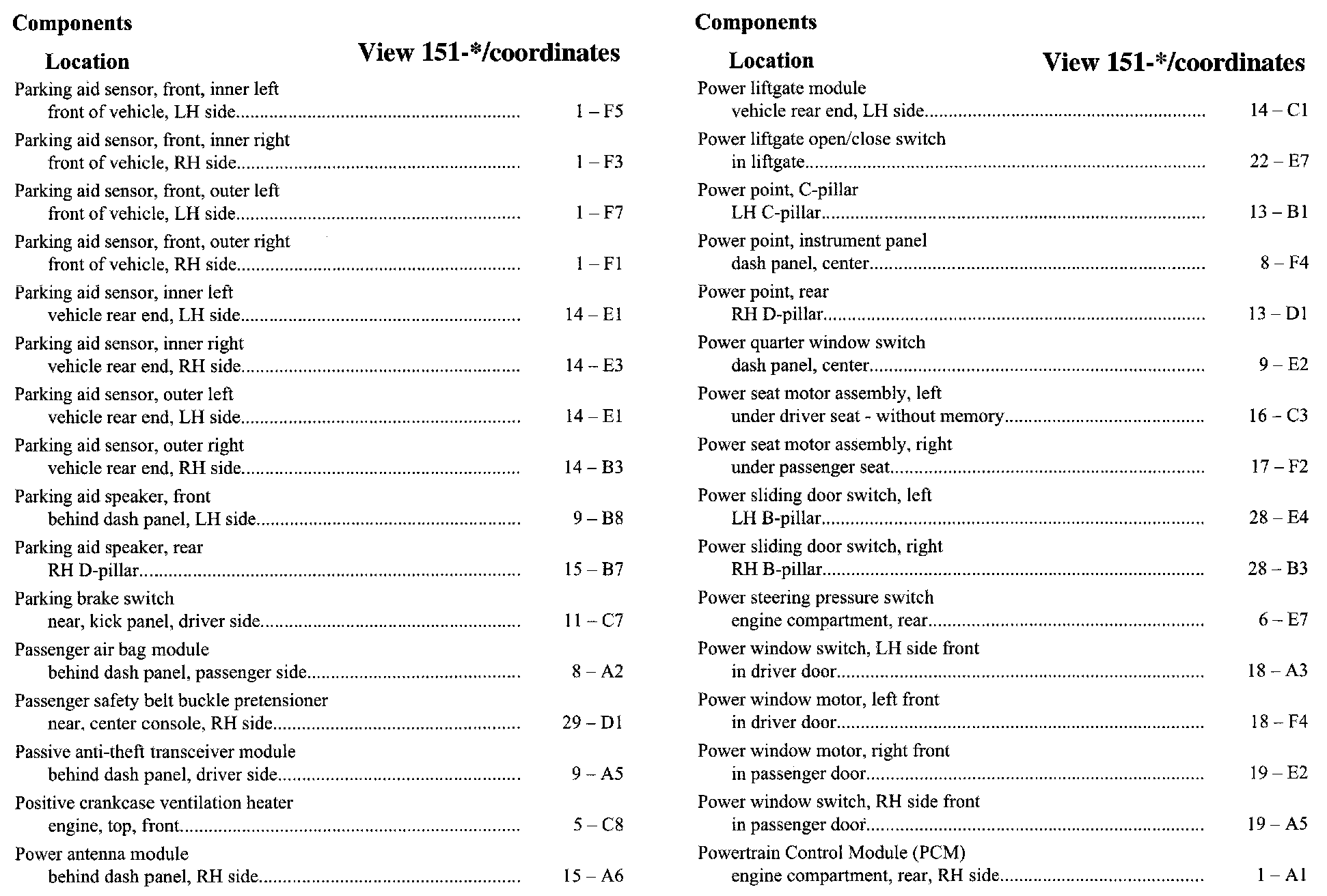 PLEASE NOTE: If a link on the Component Location Index to a View is not provided, that means that the Component and/or View in question does NOT apply to the vehicle model selected.