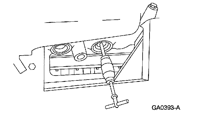 2. Inspect the cylinder block plug bore for any damage that would interfere with the correct sealing of the plug. If the cylinder block plug bore is damaged, bore for the next oversize plug.