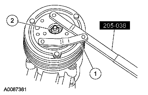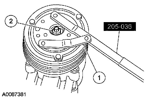 1 Hold the A/C clutch disc and hub with the special tool.