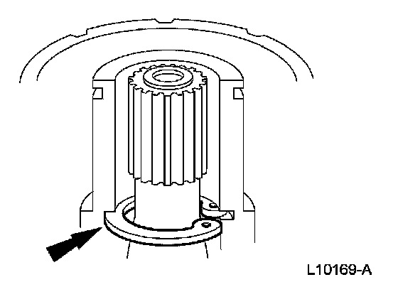 8. Pull the special tool up quickly while keeping the tool shaft against the side of the nose opening and remove the snap ring.