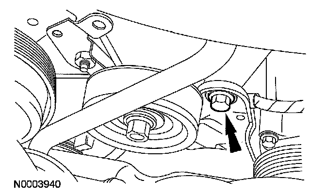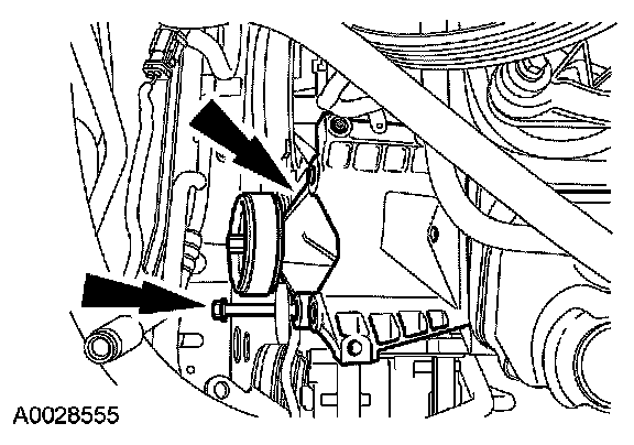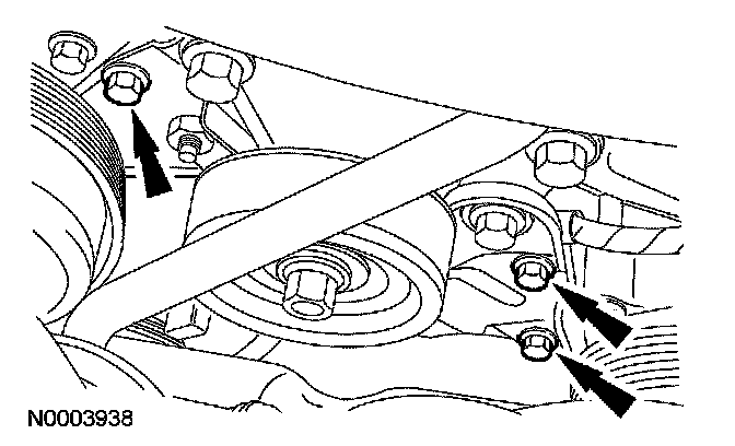 11. NOTE: The 2 lower compressor bolts must be removed with the A/C compressor.