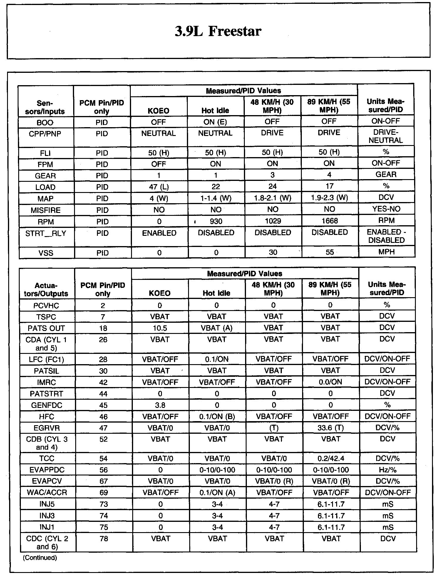 Refer to Diagnostic Methods, Parameter Identification (PID), for PID descriptions. Parameter Identification (PID)