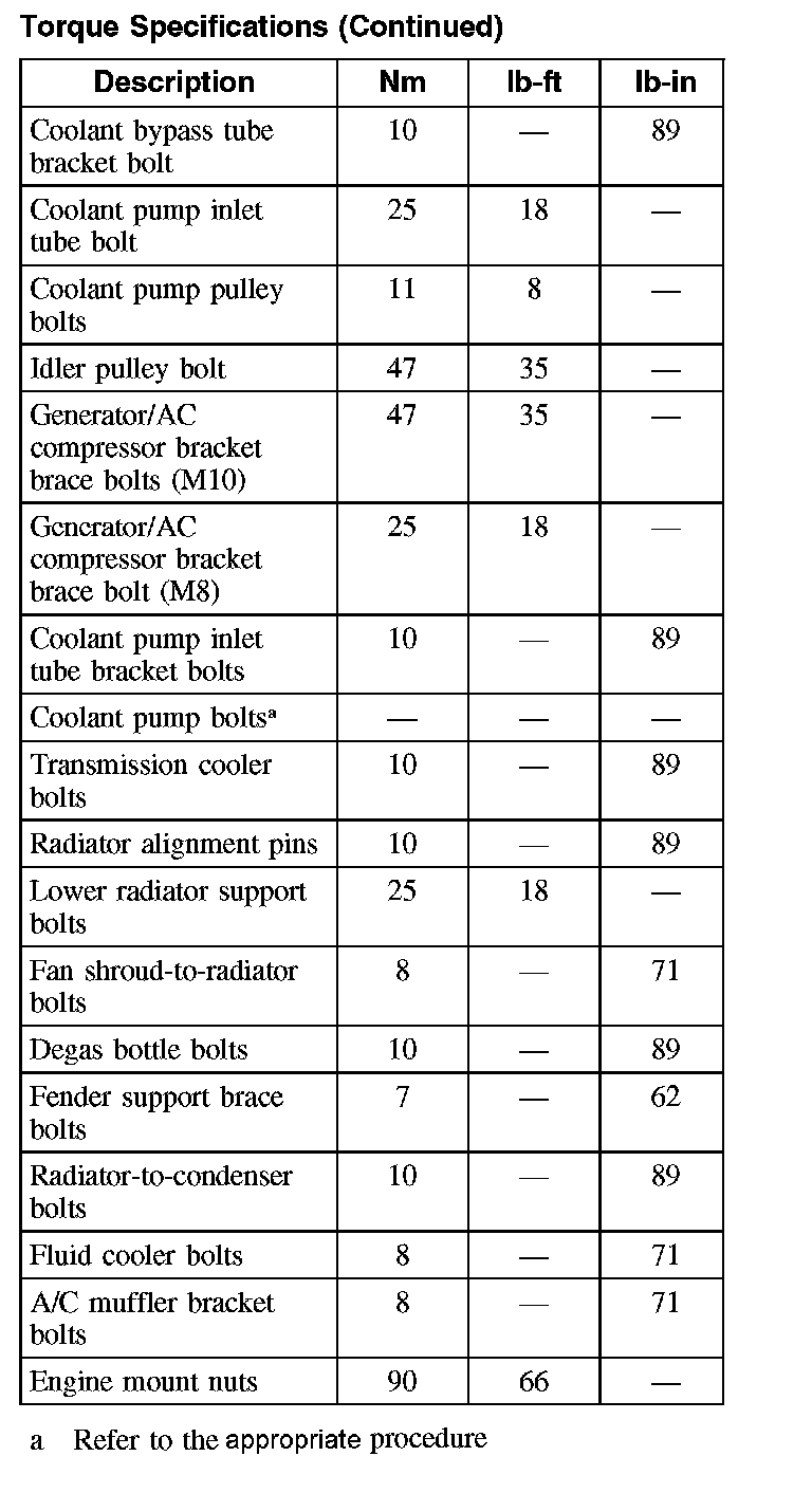 Torque Specifications (Part 1):