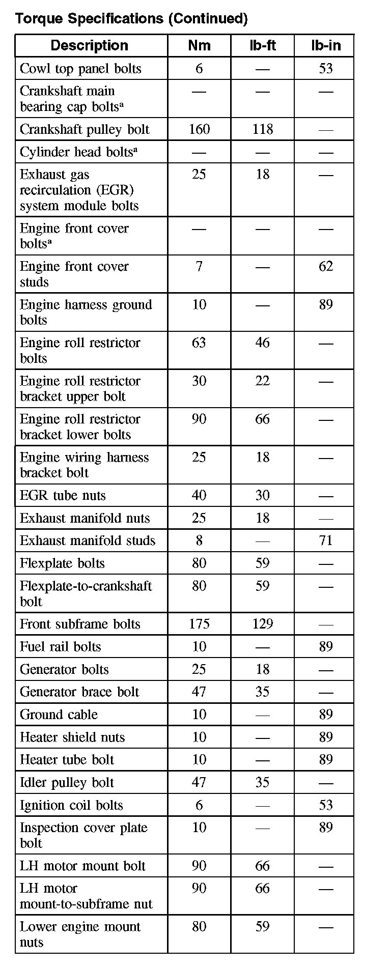 Torque Specifications (Part 2):