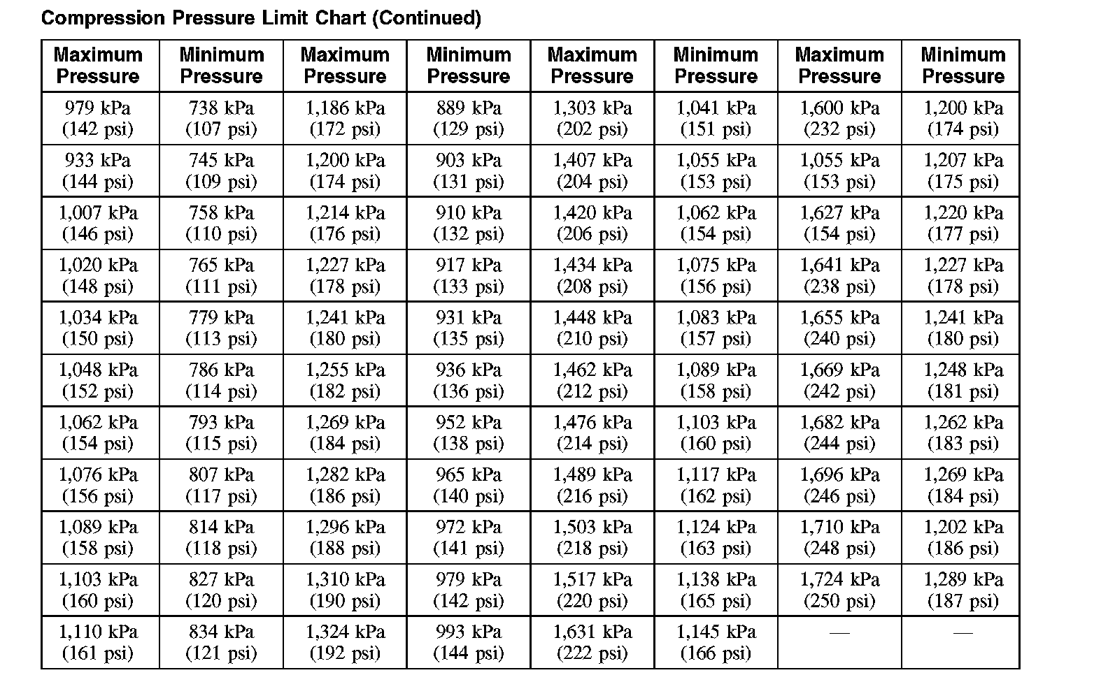 AllData Editors Note - Ford does not provide a cranking pressure specification, only an acceptable range.Compression Test - Test Results