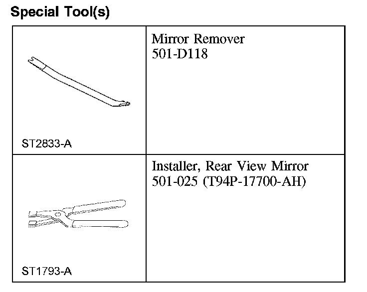 INTERIOR REAR VIEW MIRRORSpecial Tool(s):
