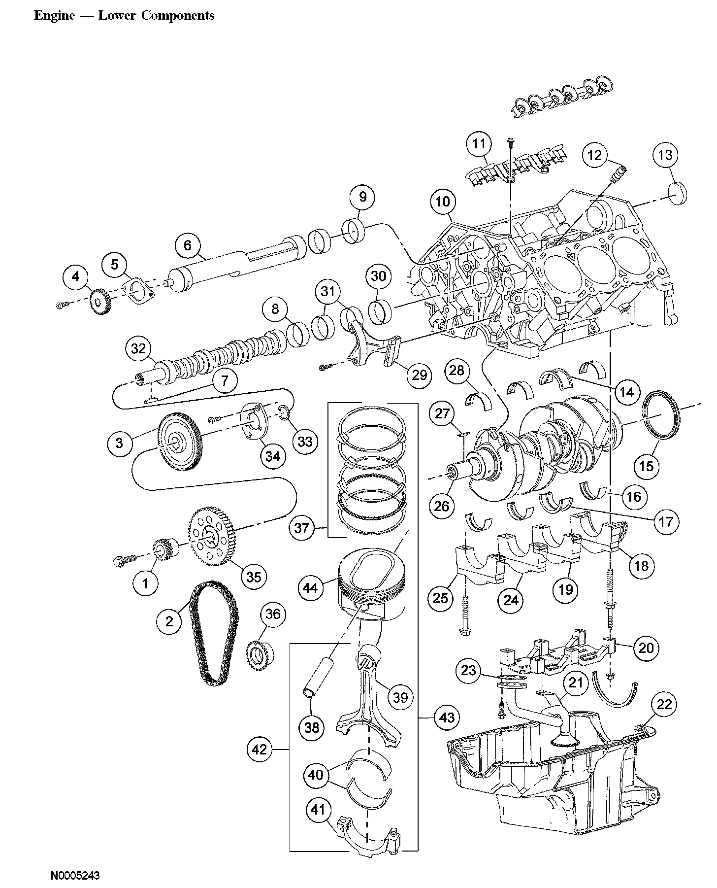 CAUTION: During engine repair procedures, cleanliness is extremely important. Any foreign material, including any material created while cleaning gasket surfaces that enters the oil passages, coolant passages or the oil pan, can cause engine failure.