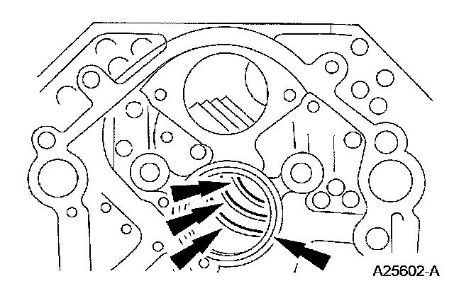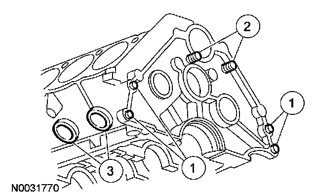 Clean the rear main bearing cap sealing area with metal surface cleaner. Apply silicone gasket and sealant to the rear main bearing cap-to-cylinder block parting line.