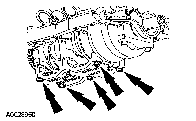 8. NOTE: If the rear main bearing cap is not installed within 4 minutes, remove the sealant and reapply.
