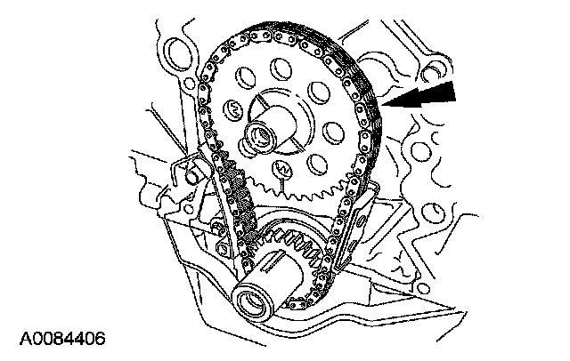 26. Install the timing chain, the camshaft sprocket and the crankshaft sprocket as an assembly.