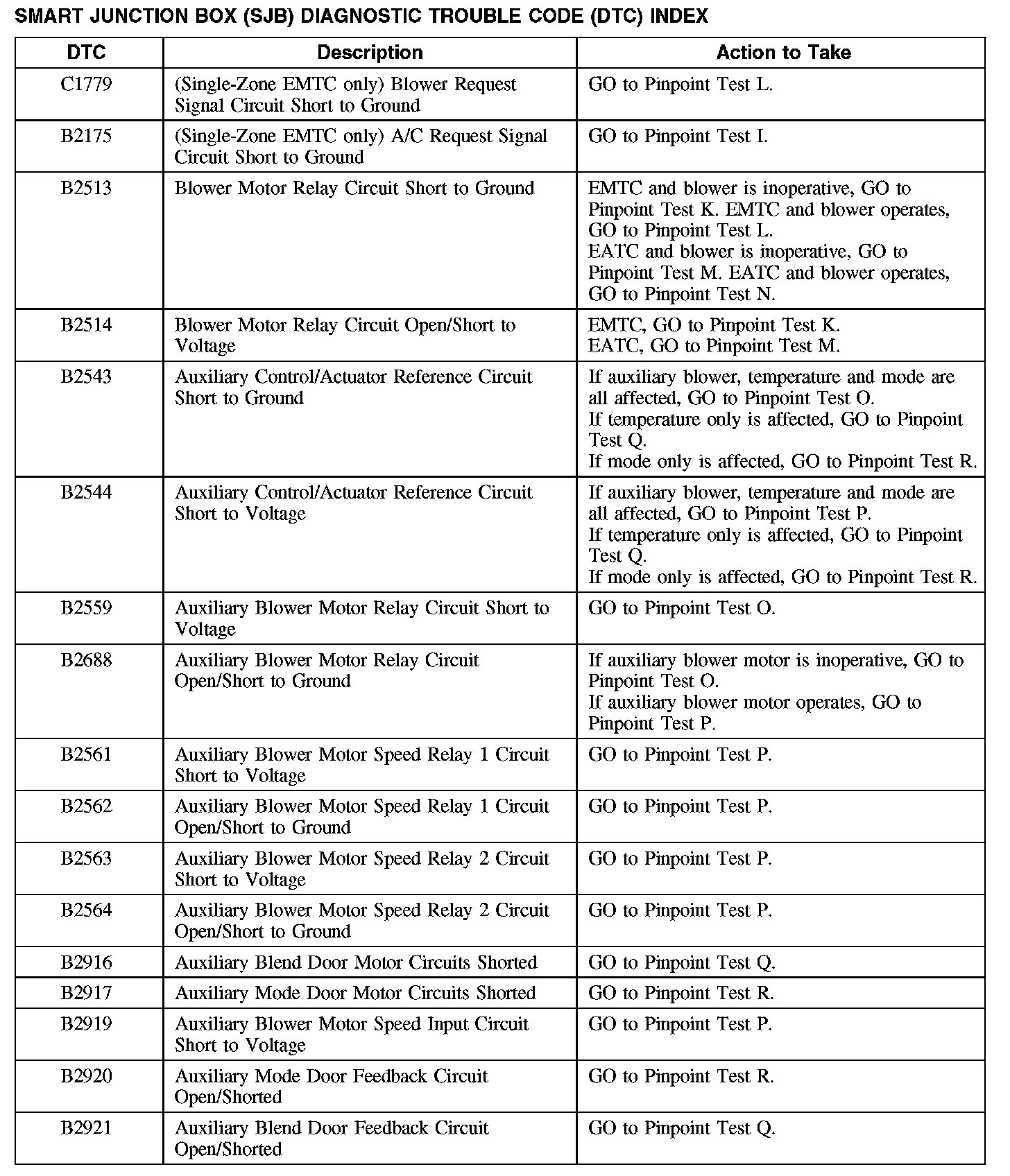 Smart Junction Box (SJB) Diagnostic Trouble Code (DTC) Index