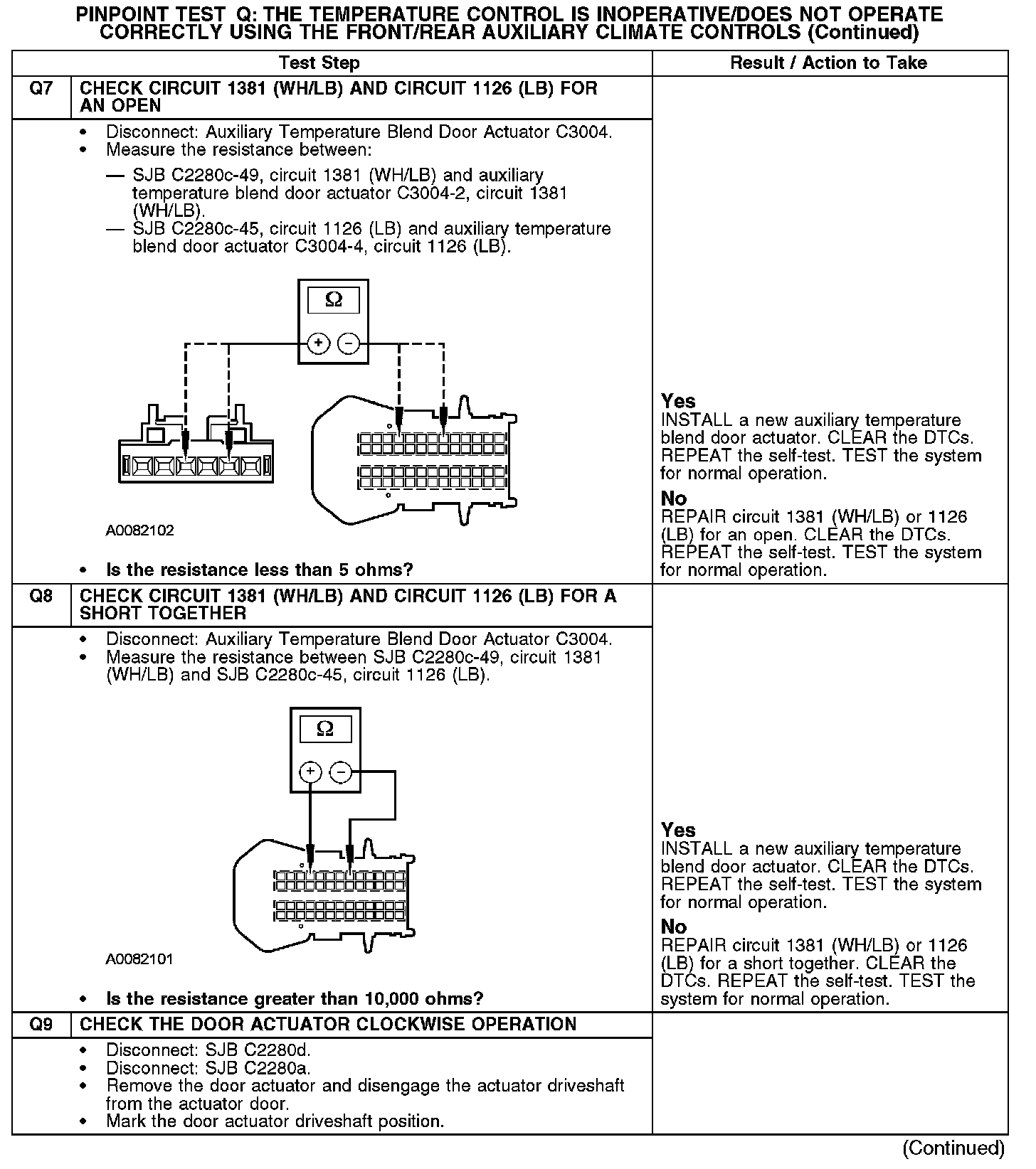 PINPOINT TEST Q: THE TEMPERATURE CONTROL IS INOPERATIVE/DOES NOT OPERATE CORRECTLY USING THE FRONT/REAR AUXILIARY CLIMATE CONTROLSQ1-Q2: