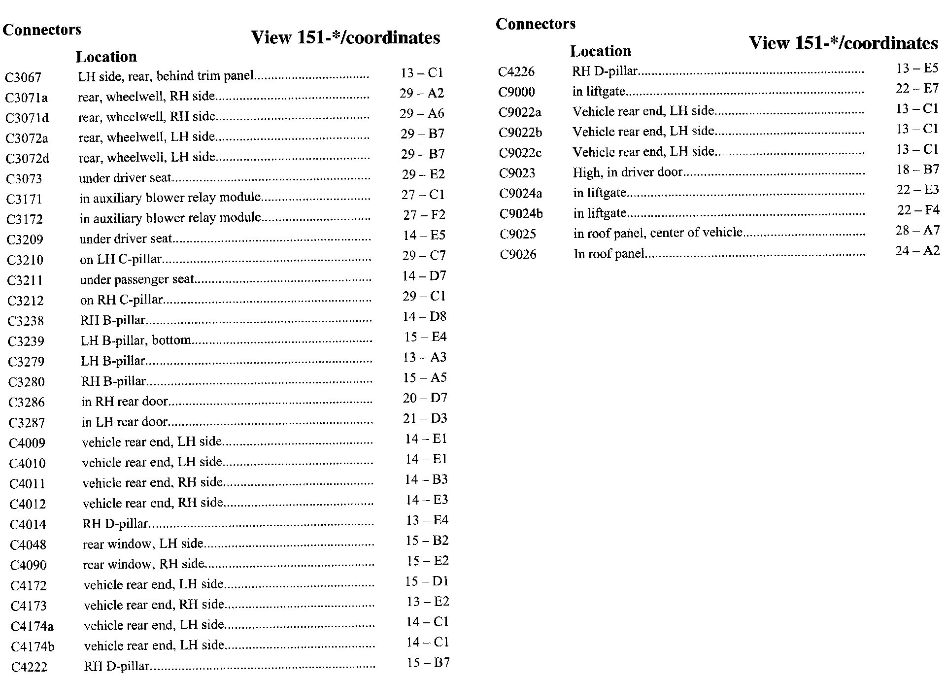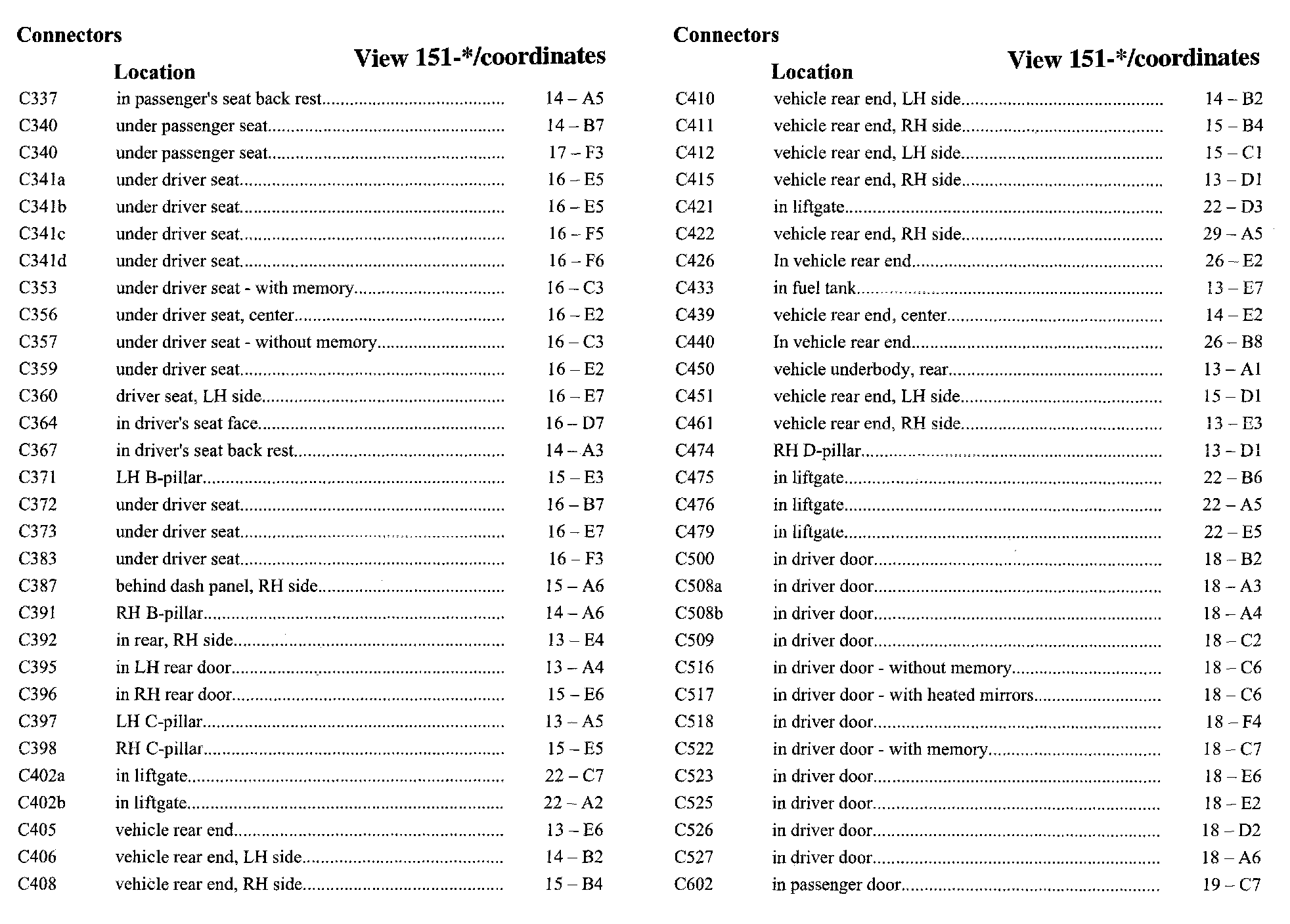 PLEASE NOTE: If a link on the Connector Location Index to a View is not provided, that means that the Connector and/or View in question does NOT apply to the vehicle model selected.