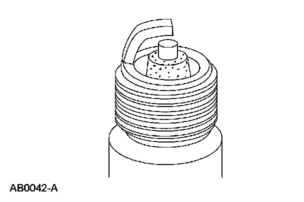 ^ Check for wet, black deposits on the insulator shell bore electrodes, caused by excessive oil entering the combustion chamber through worn rings and pistons, excessive valve-to-guide clearance or worn or loose bearings.