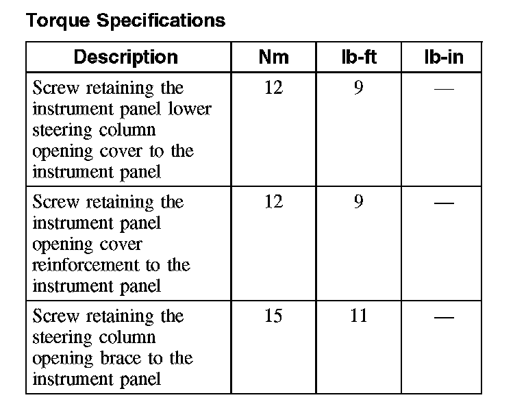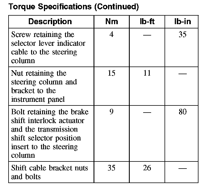 Torque Specifications (Part 1):