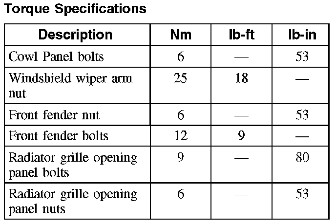 Torque Specifications: