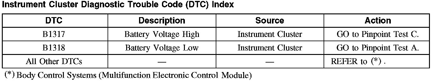 Instrument Cluster Diagnostic Trouble Code (DTC) Index