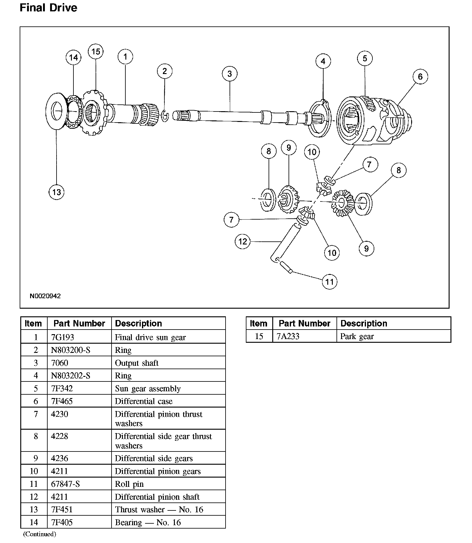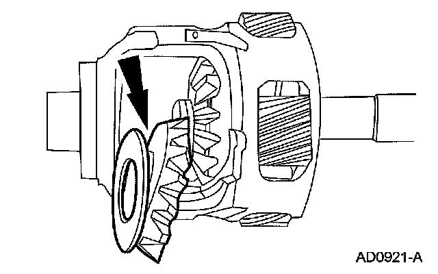 1. Inspect the differential pinion and side gears for looseness, discoloration, cracks or excessive gear wear.