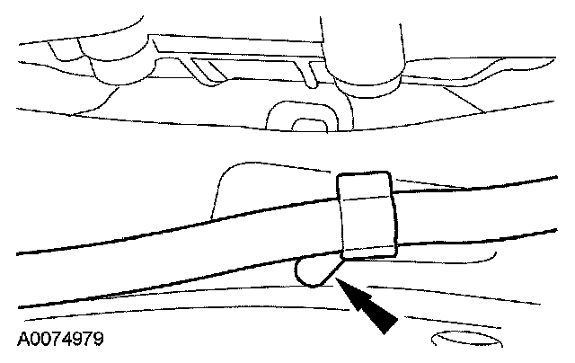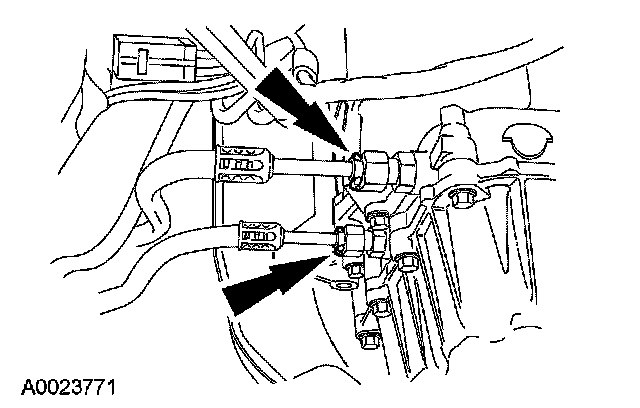 20. Depress the tabs on the plastic insert retainer and remove the cooler line from the fitting.