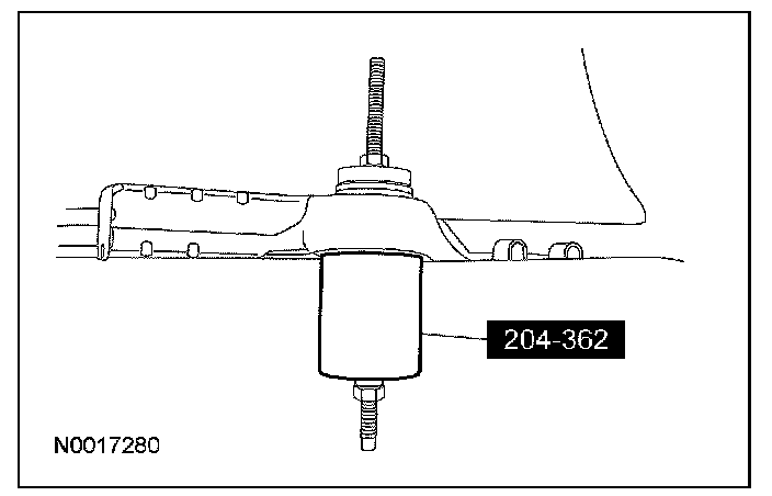 1. Assemble the special tools to the front subframe with the new subframe bushing.