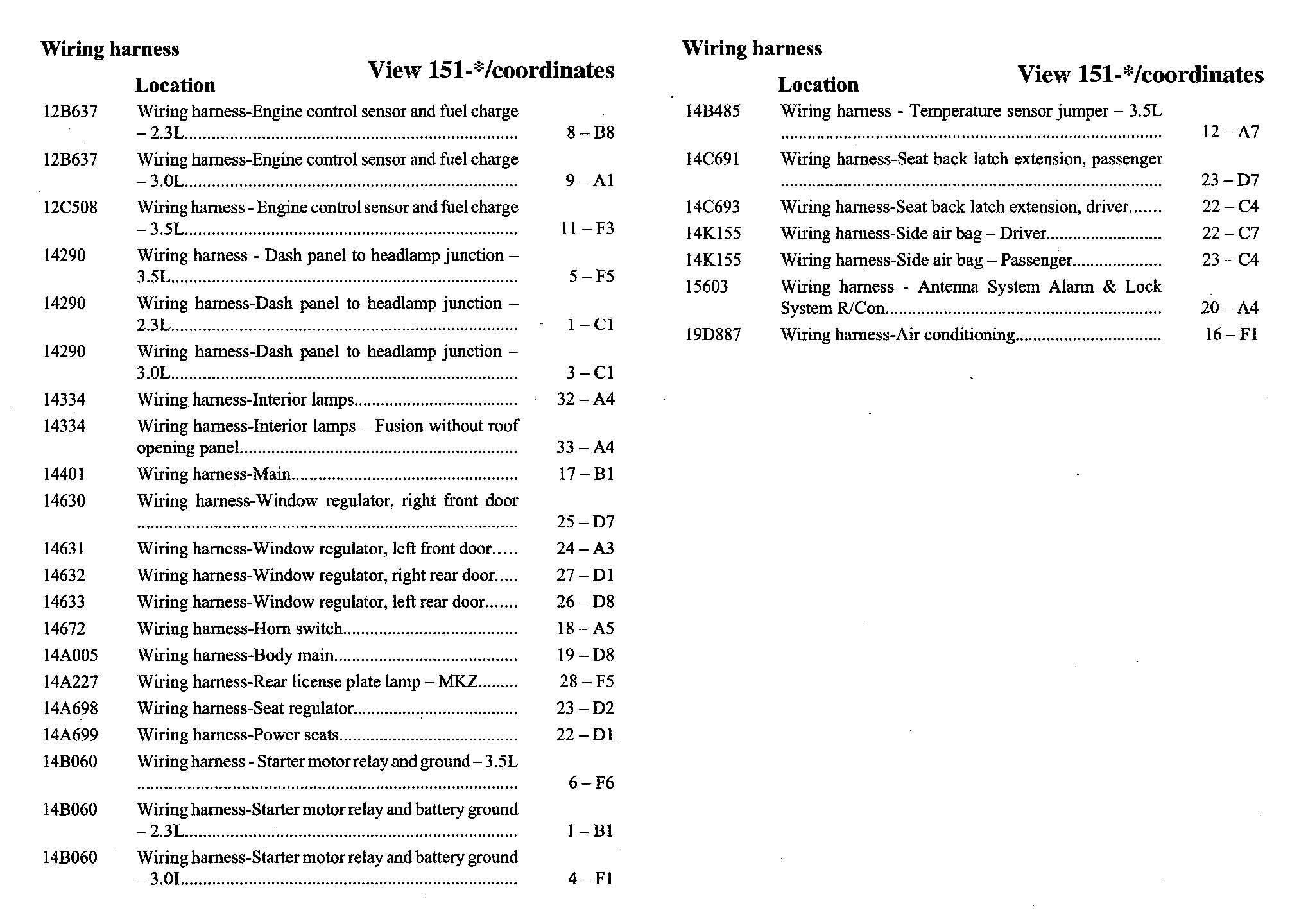 If a link on the Harness Location Index to a View is not provided, that means that the Harness and/or View in question does NOT apply to the vehicle model selected.