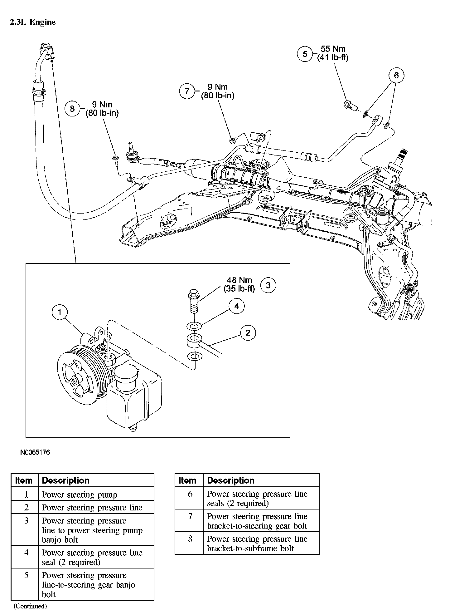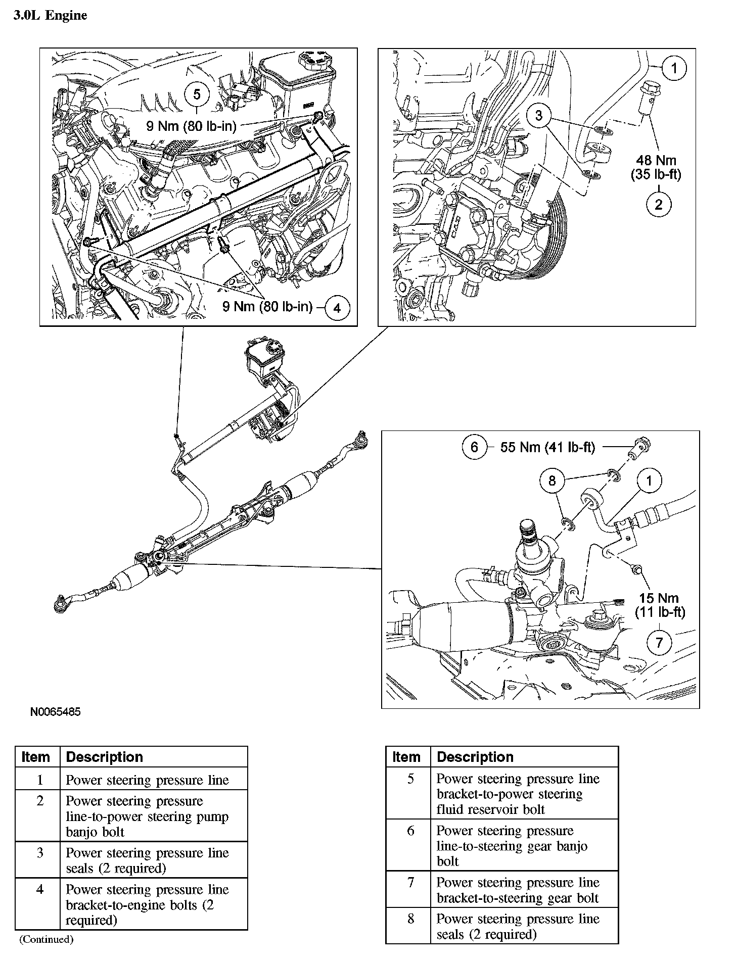 18. CAUTION: New banjo bolts and new seals must be installed any time the power steering pressure line is disconnected from the power steering pump and/or the power steering gear.