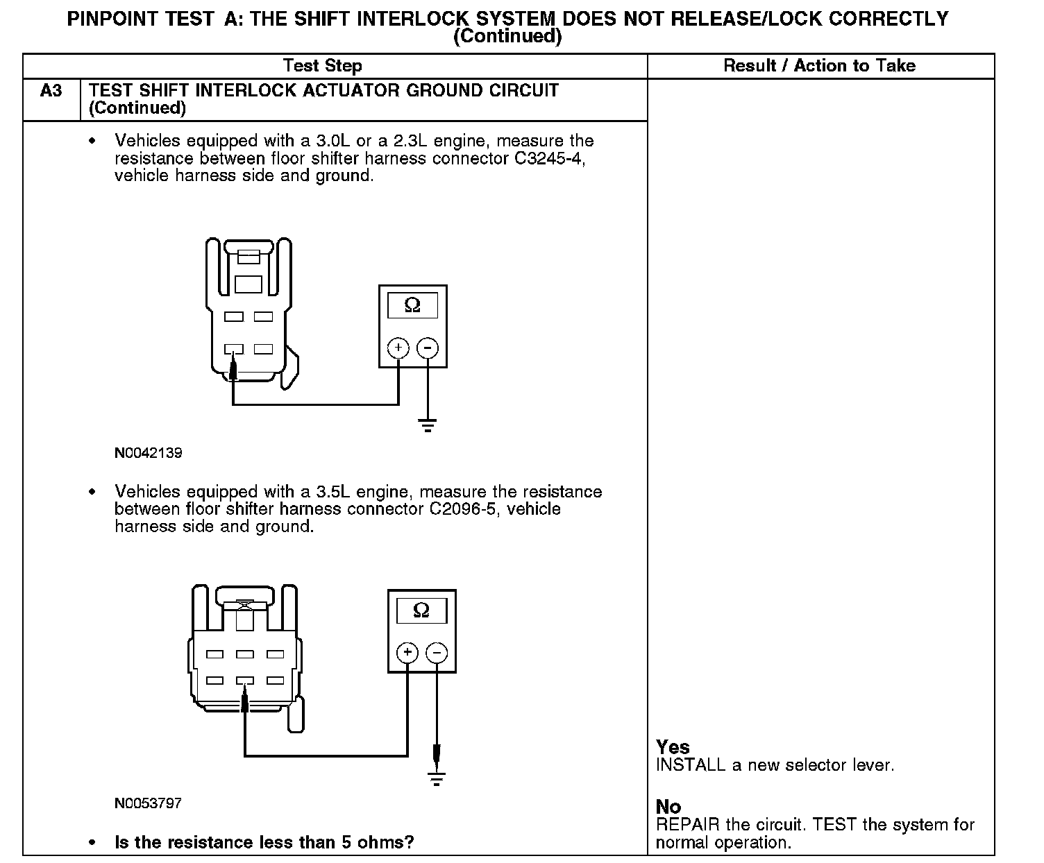 TEST A: THE SHIFT INTERLOCK SYSTEM DOES NOT RELEASE/LOCK CORRECTLY
