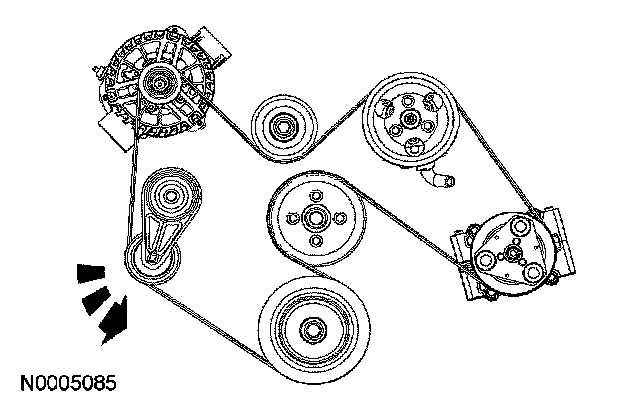 1. Using a suitable belt tensioner release tool, rotate the accessory drive belt tensioner counterclockwise and remove the accessory drive belt.